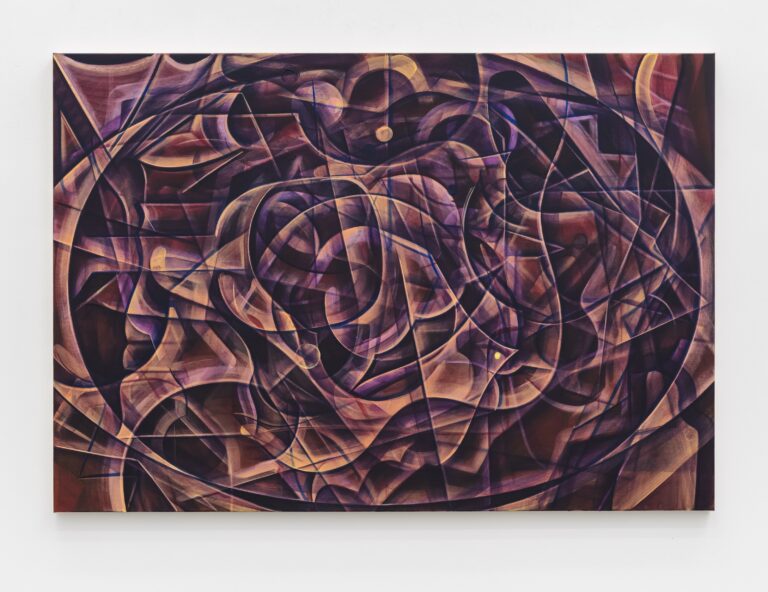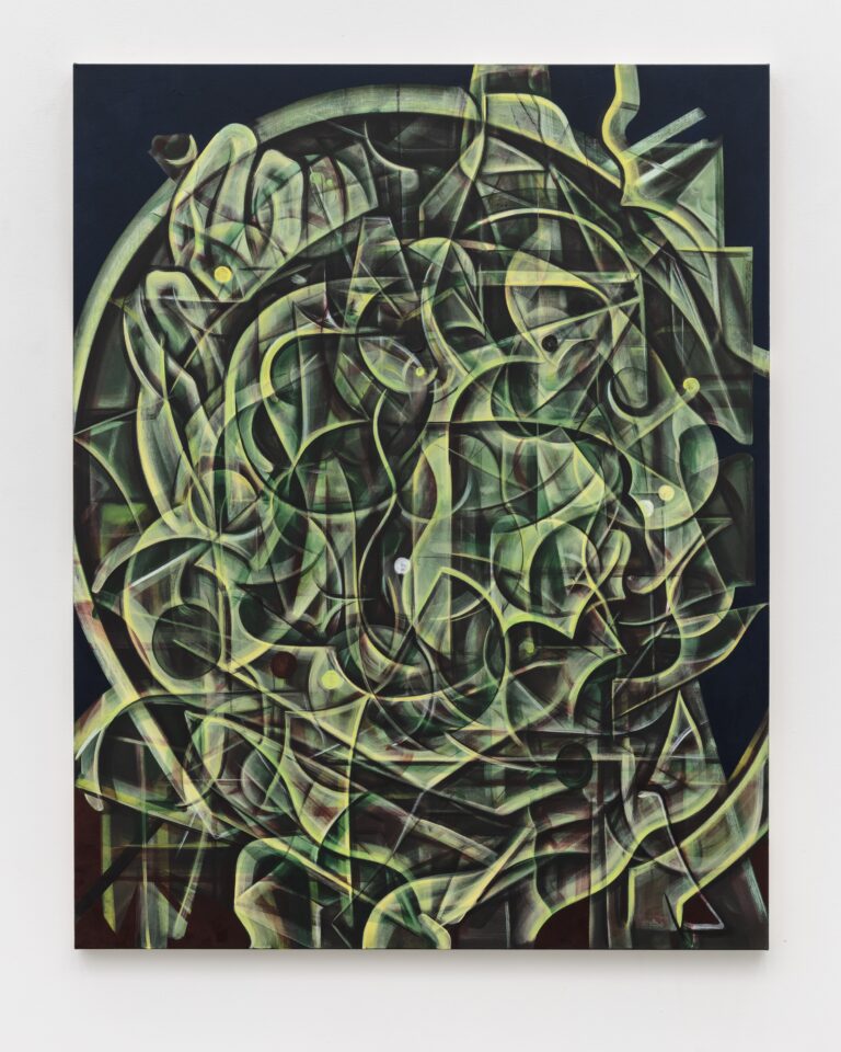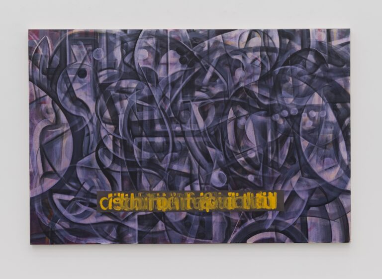 The visual material he draws from is often sourced from art history. It involves forms that appeal to him or that he wants to further develop. The artist incorporates material from his own life — images or texts that hold personal significance or that he wishes to process in some way. He also paints from moving images in real time, translating motion into still forms, focusing on the opposites of movement and stillness, as well as the familiar and the unknown. Layers of time and fragments of information accumulate into images. Perhaps it reflects a restless desire to have everything at once, but it’s also a method for reaching something new.